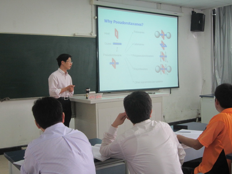 这次报告不仅仅是一场精彩的学术报告,同时激发起了与会师生对超分子化学、互穿结构以及主客体化学浓厚的兴趣,还使与会师生在科研选题、研究方法等方面深受启发,拓宽了思路,同时,也深切感受到来自学术前沿的新进展和新思想。(丁丽媛)