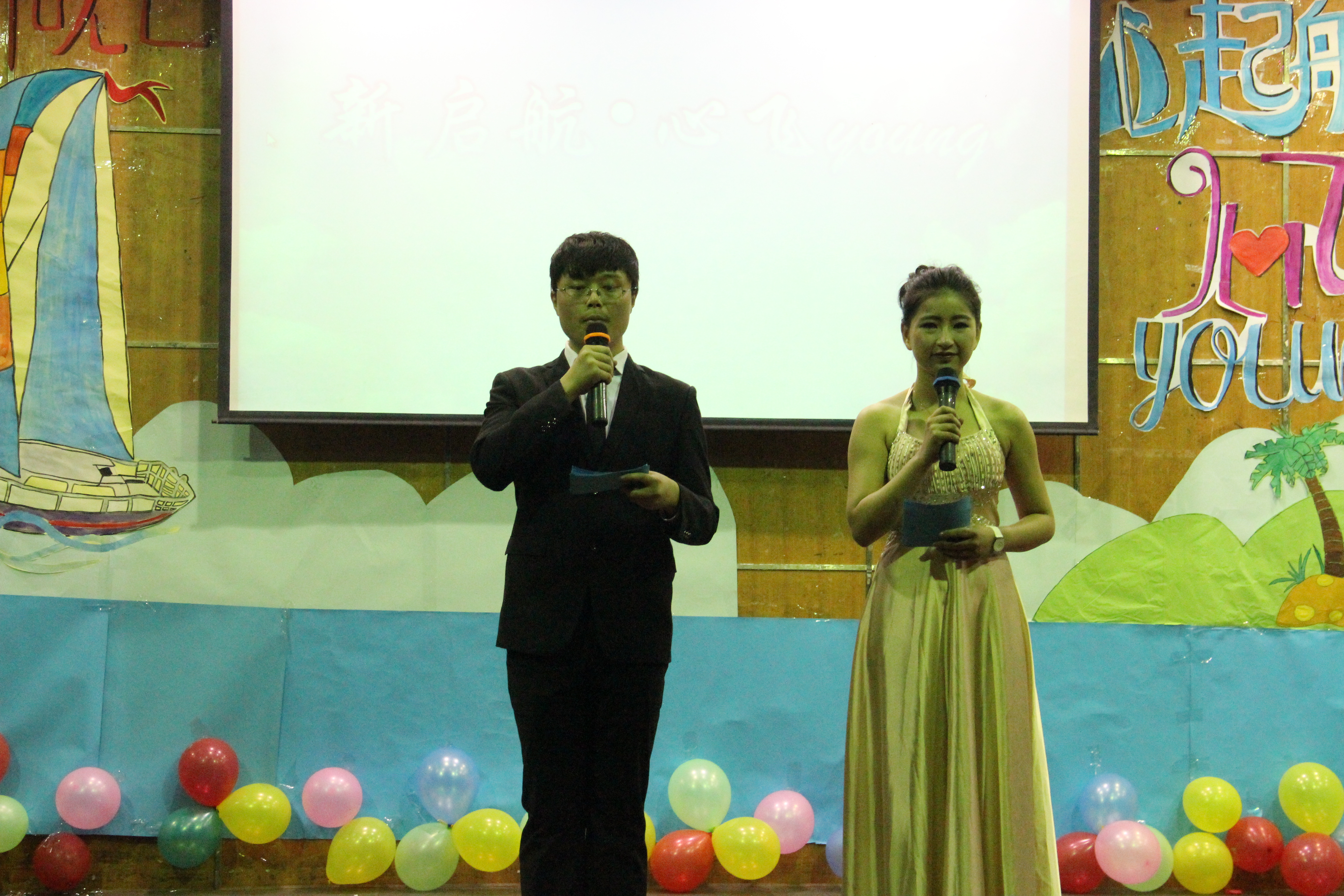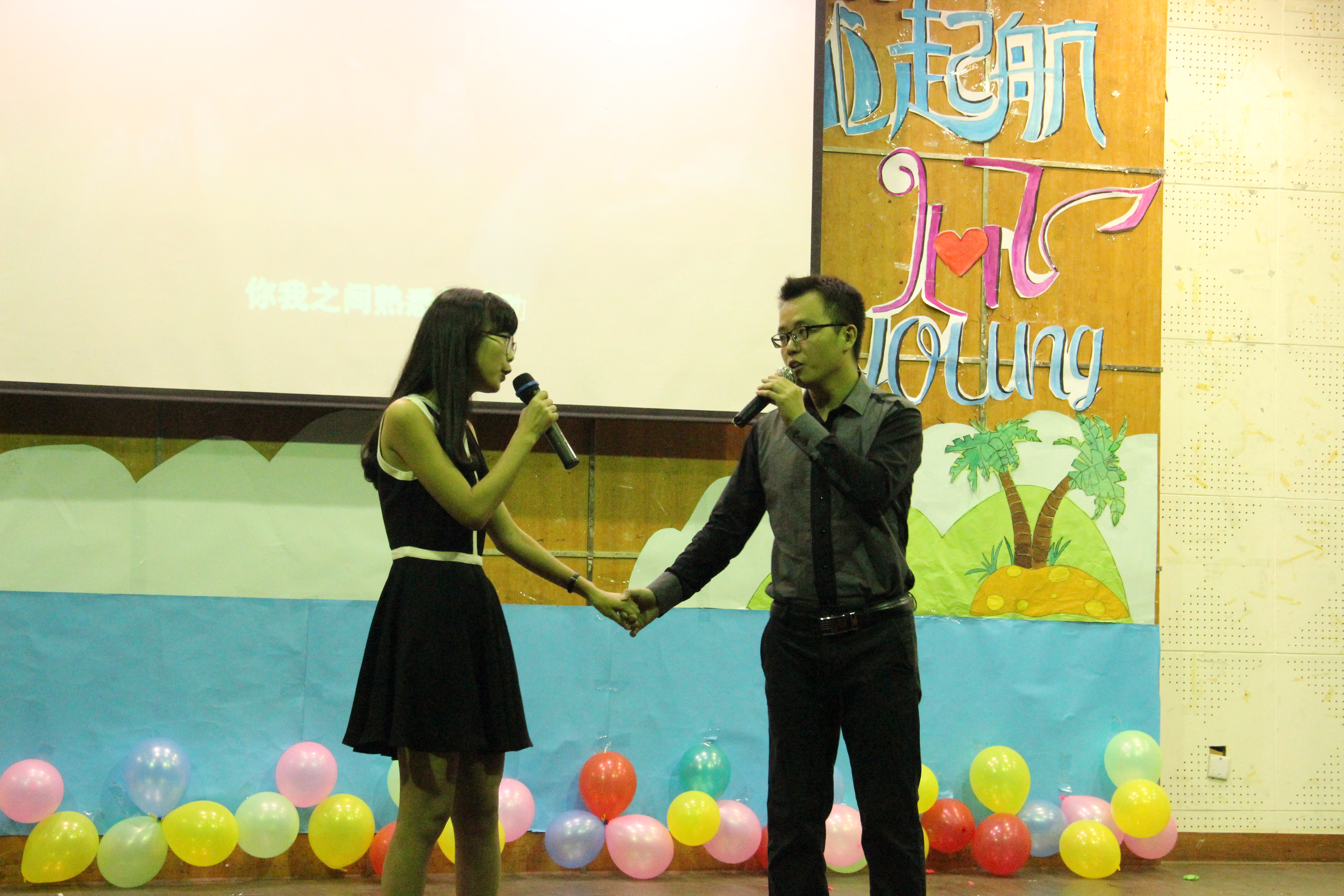 9月9日晚,材料与化学化工学院在钧儒厅举行“新启航•心飞young”中秋迎新晚会。院长邱化玉、党委书记李兴听、副院长王园朝、党委副书记江齐里以及姜兴华、钱志松、位彭、袁盛4位教官、校学生会主席汪翔、14级各班班主任前来参加晚会,与全体新生共度佳节。