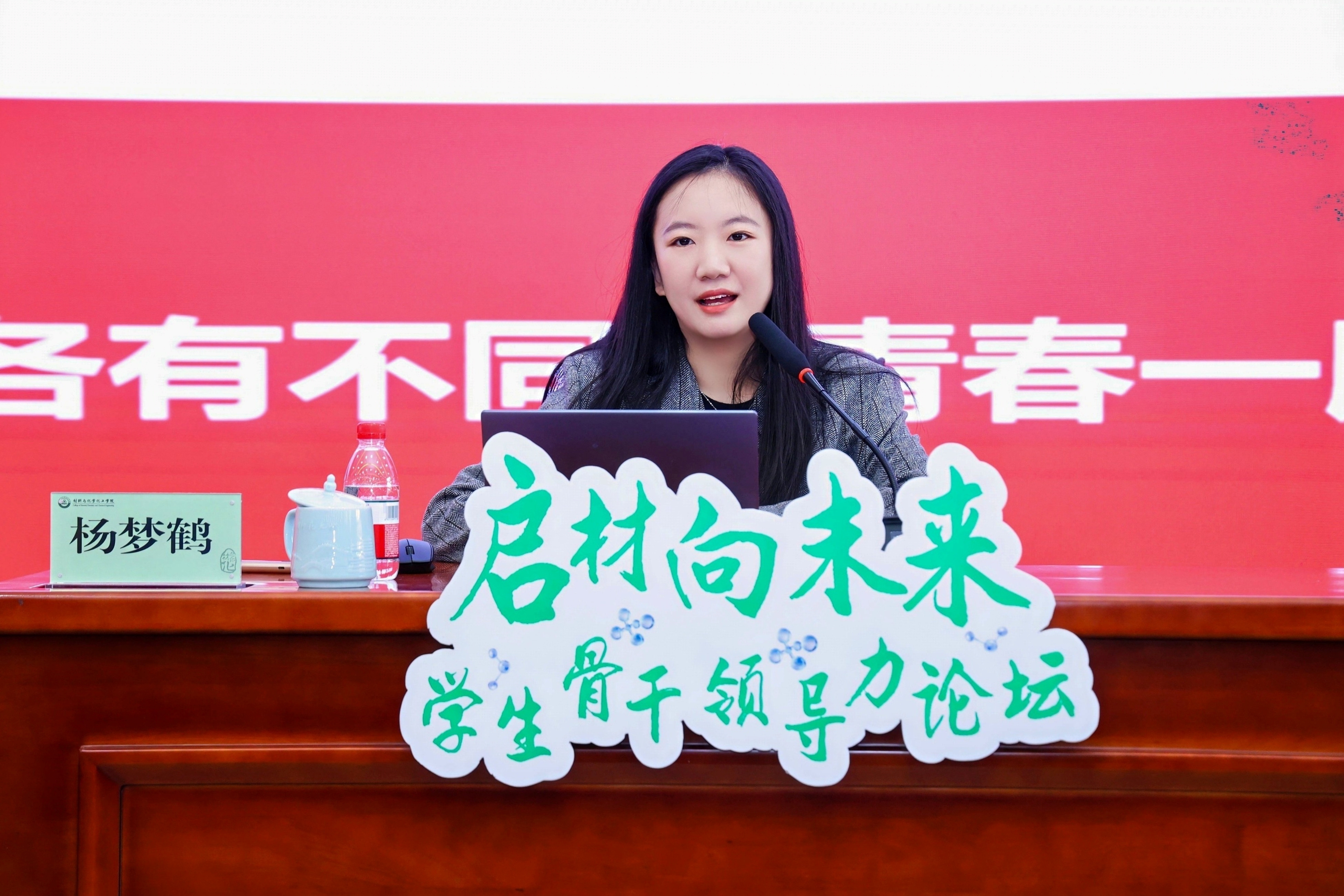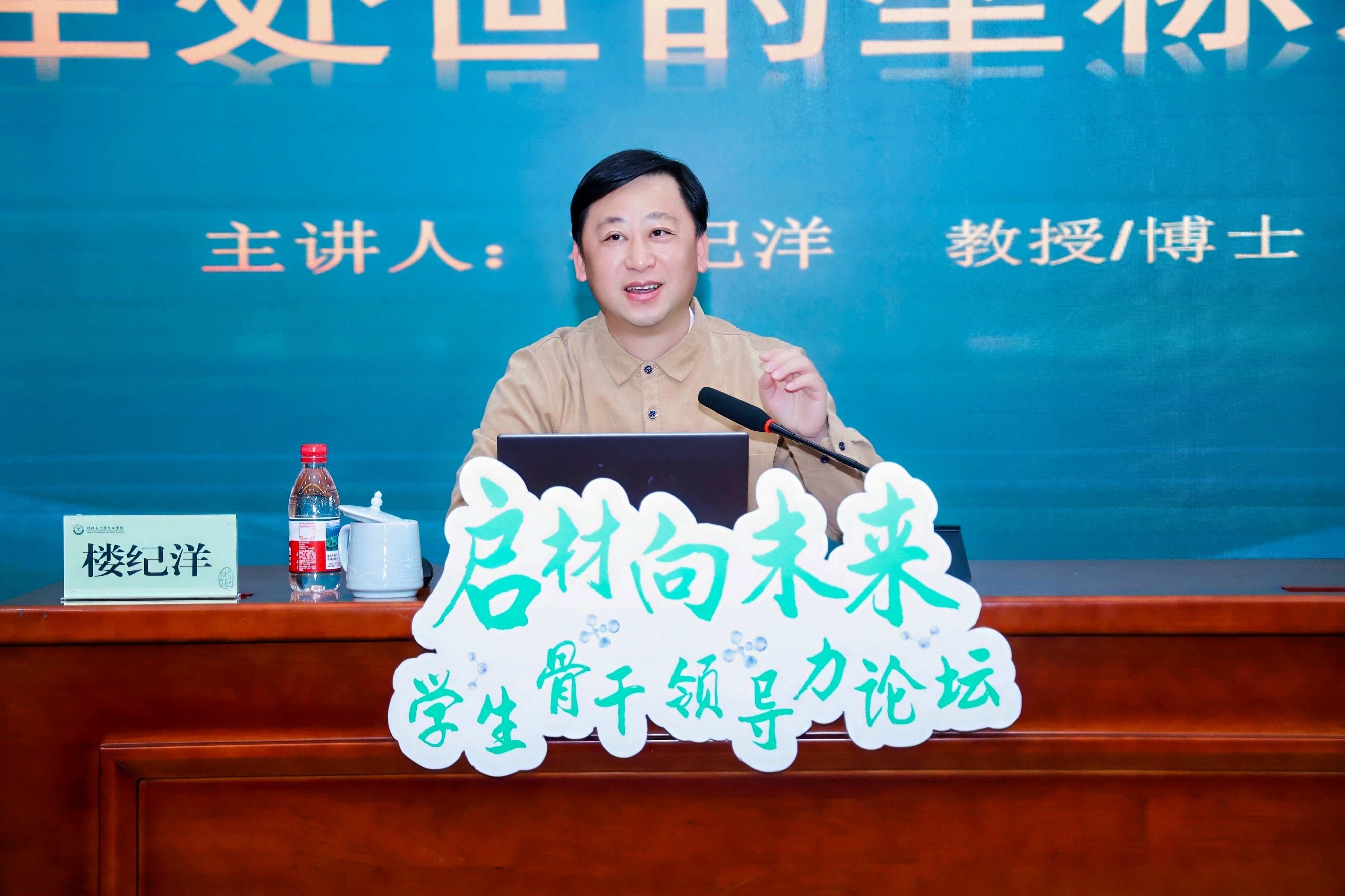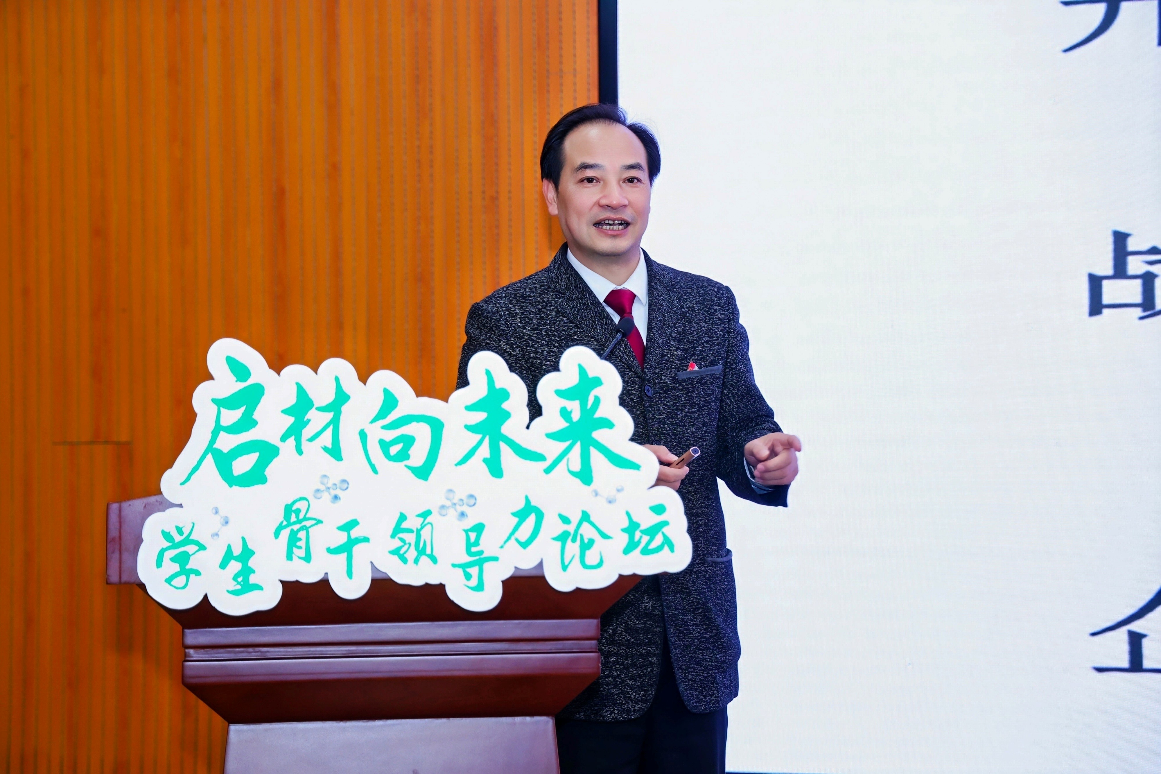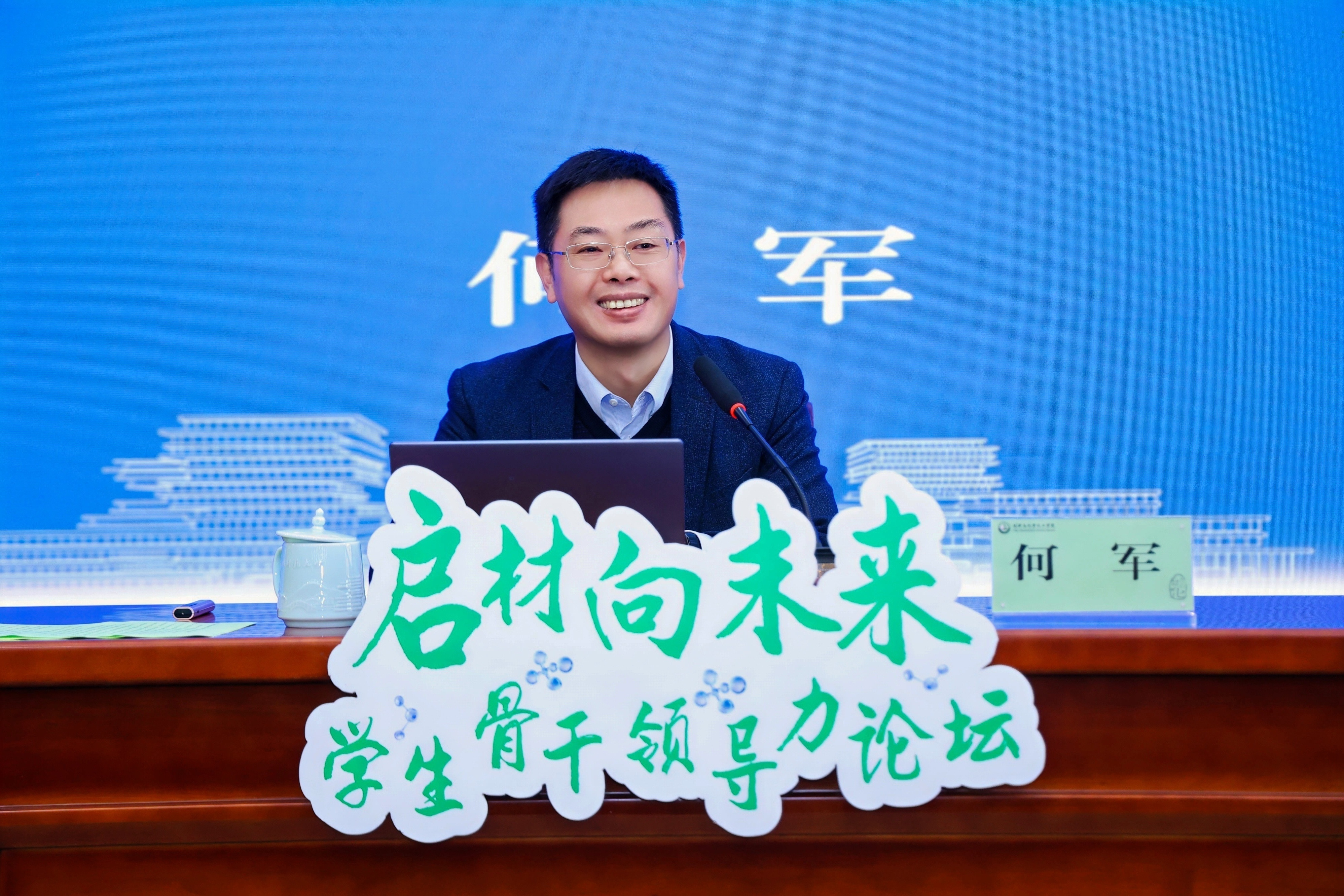 何军以“激发青春活化能,担当成长催化剂——新时代高校学生干部的锤炼与担当”为主题开讲,他以化学思维为独特视角,聚焦三个最核心的反应方程式:“为何”要担任学生干部(求解反应的价值与驱动力)、“困局”如何破解(优化反应的路径与条件)、“何为”优秀的学生领袖(催化反应的效率与成果),结合自身丰富的学生工作经历和鲜活的工作案例,带领同学们一一启发求解。何军强调,学生干部需以初心、能力、思维、价值四维协同,从“反应物”成长为赋能集体的“催化剂”,以青春担当书写新时代“化学方程式”,为高校学生工作注入新活力。