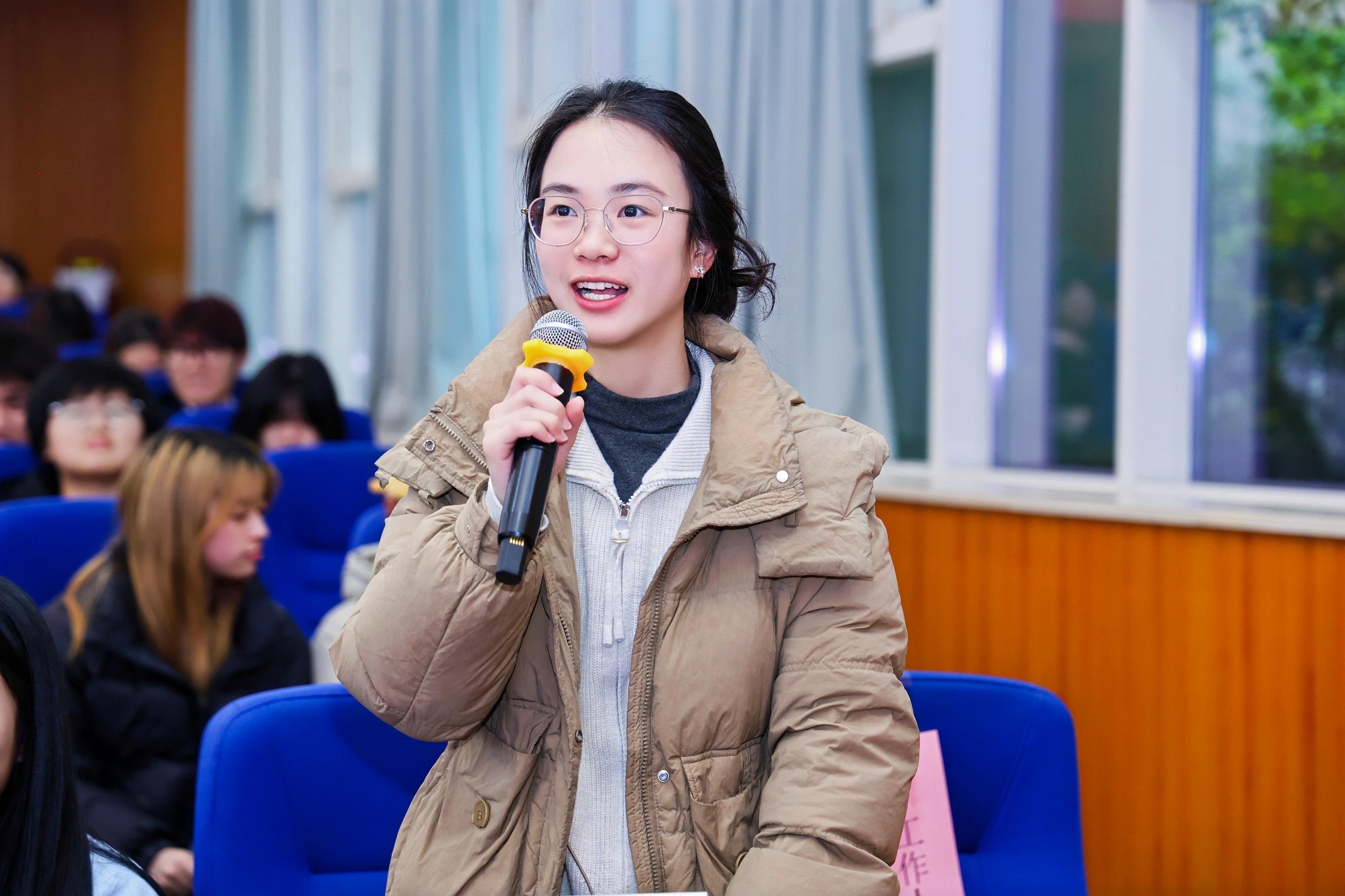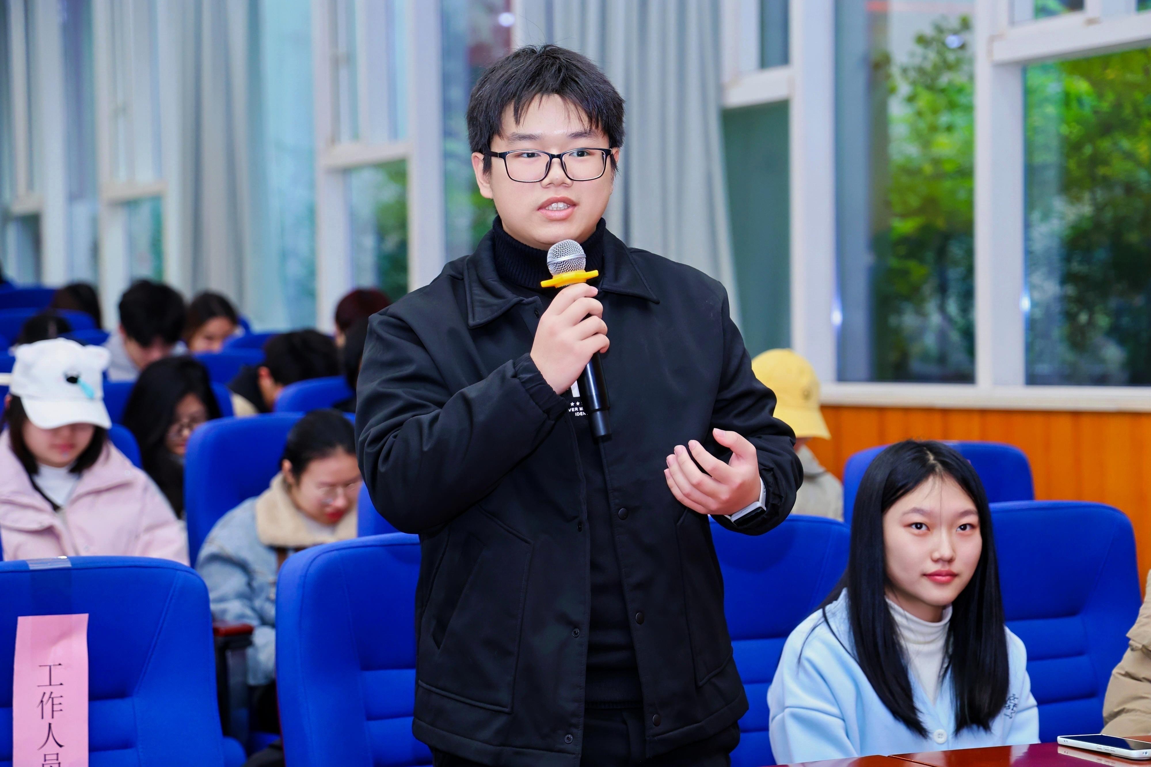 在经验分享环节,郑楷、陈文轩、张丁元三位优秀学生学长登台,结合自身成长经历与科创实践故事,分享了在学生工作、科创工作、学科竞赛中的心得感悟。郑楷学长结合3年创赛经历,详解创赛意义、优质项目类型及“三大赛”规则,建议低年级找准定位、高年级勇担负责人。陈文轩学姐以化竞为例,分享“找导师、读文献、出成果”的学科竞赛路径,强调全学科竞赛需避热点、重包装,且要保持平和心态。张丁元学长聚焦大学生活,支招自律、学习与信息获取能力培养,谈及学生工作对沟通、实干等软性技能的提升作用,还以化工设计大赛为例,提醒组队需慎重,同时重视自学、问题解决、进度把控与抗压能力,为学弟学妹提供全面指引。