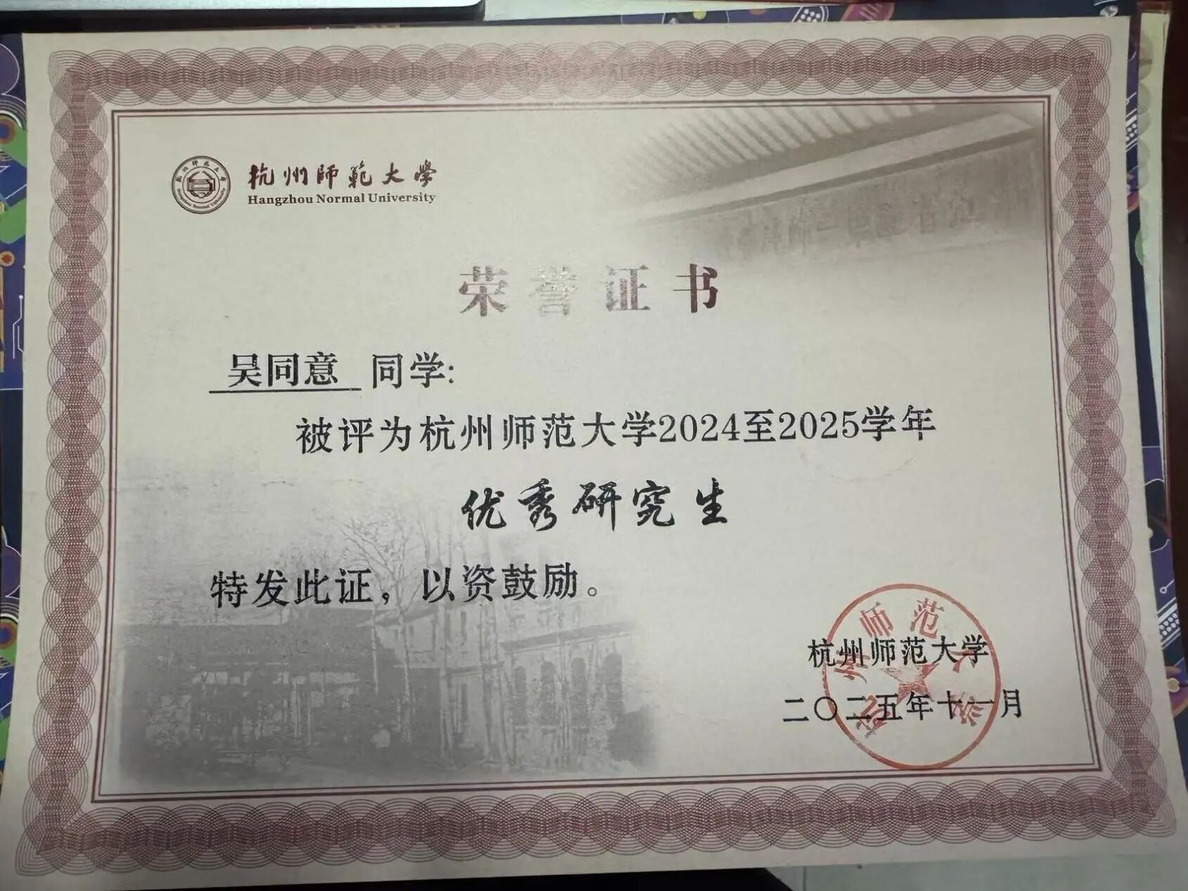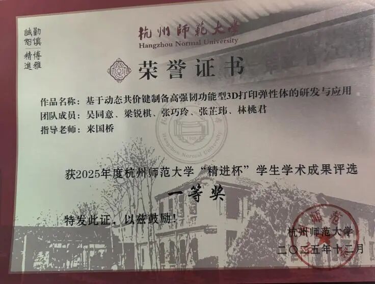 在杭州师范大学,从本科到研究生的七年光阴,吴同意将大部分时光交付给了实验室。当“内卷”、“焦虑”成为同辈间的高频词,他选择了一条看似“缓慢”的路:留在母校,在自己初识科研时便钟情的“3D打印”材料领域,继续深耕。