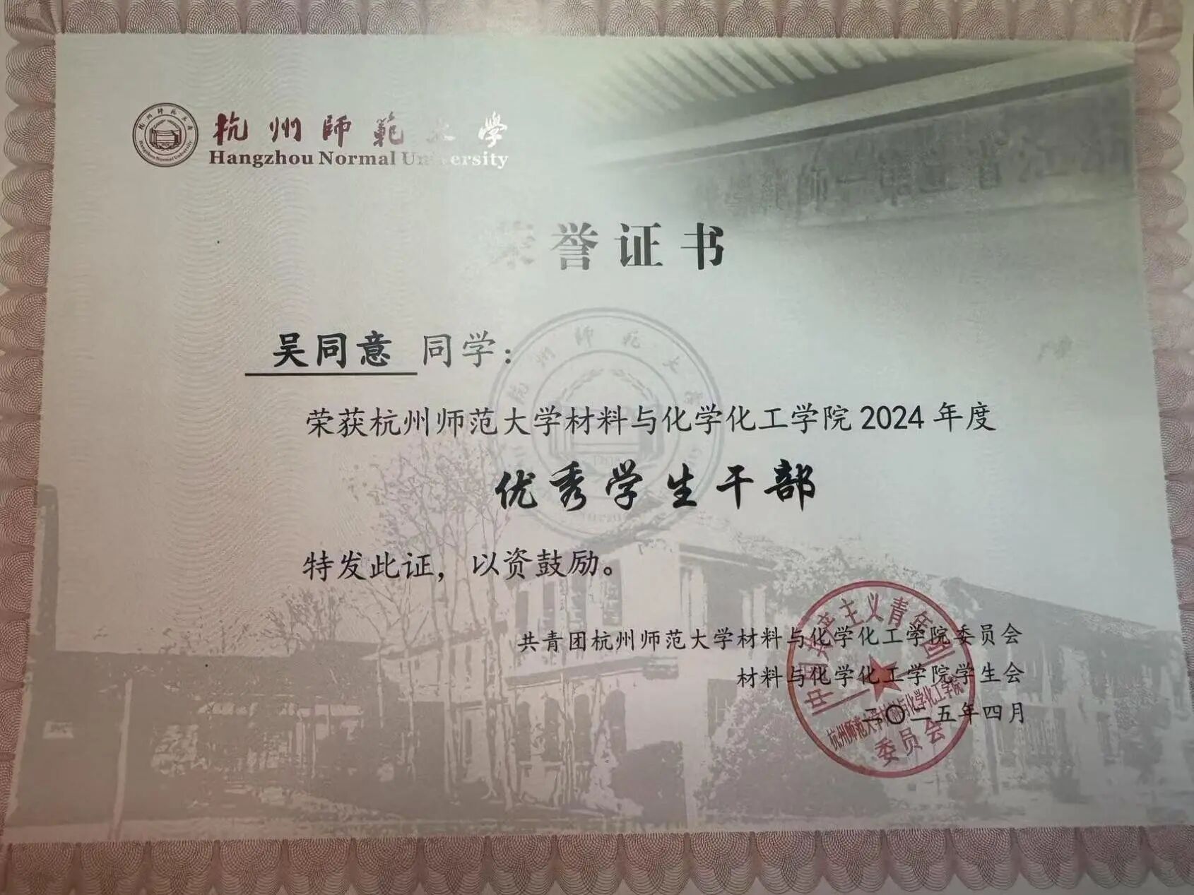 浙江省优秀毕业生