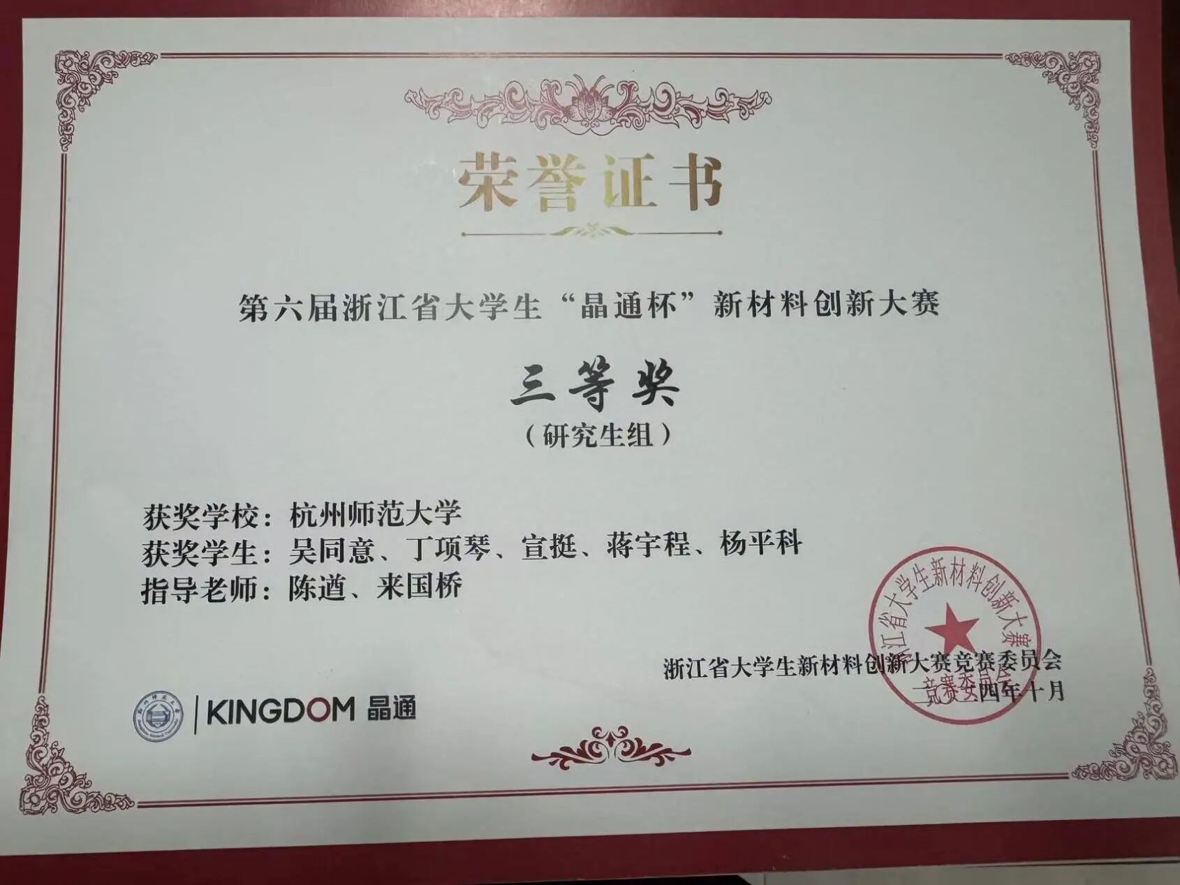 新材料大赛浙江省三等奖