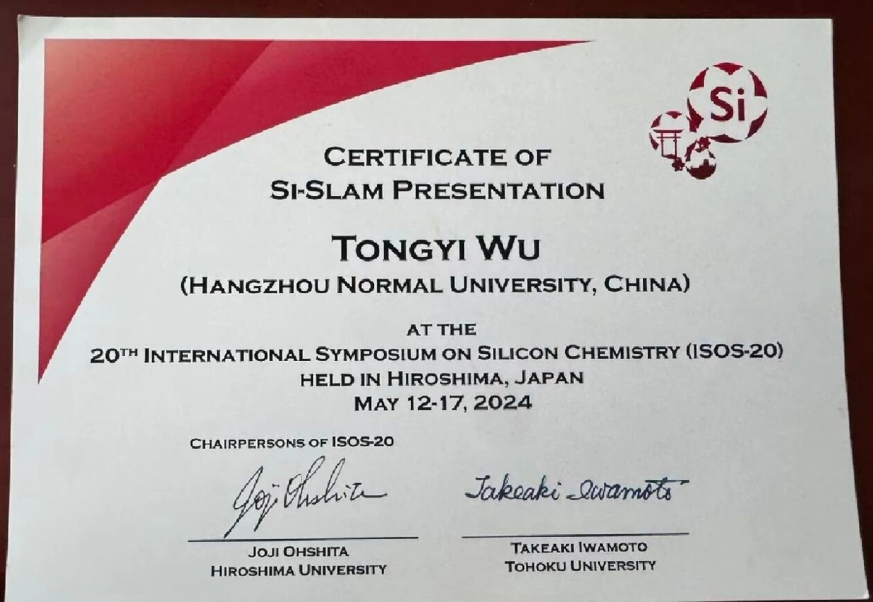 2024年,吴同意踏上了前往日本广岛的旅程,参加 “第二十届国际硅化学论坛会暨第九届亚洲硅论坛会”。这是全球硅化学领域的顶级盛会,云集了学界与工业界的顶尖头脑。吴同意带着他在“3D打印硅基复合材料”上的研究成果,登上了演讲台。一个细节让他至今心潮澎湃——他是该届论坛所有亚洲参会者中,唯一一位参与“Si-Slam”项目的中国学生。“当我开始演讲,身后幻灯片首页的国旗标识,让我感受到的不仅是个人荣誉,更是一份沉甸甸的责任。”那一刻,他代表的不仅是自己的研究成果,更是中国青年科研工作者的风貌与水准。他用流畅的论述、严谨的数据,向世界展示了中国青年的学术自信。这份经历,是至高无上的荣光,更是习近平总书记所言“新时代的中国青年是好样的,是堪当大任的!”的最佳注脚。
