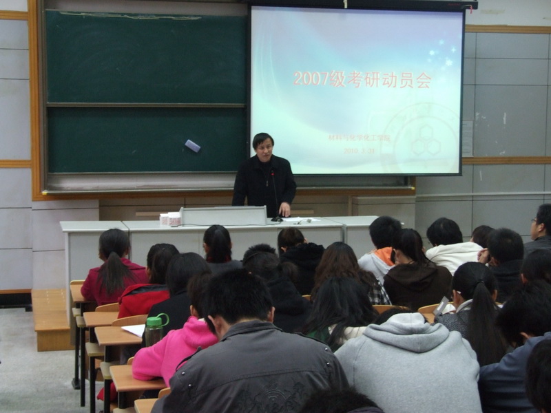 3月31日下午,材料与化学化工学院2007级同学考研动员大会于E-101举行。材化学院执行院长邱化玉、党总支副书记何丽君、副院长吴静以及2007级班主任和辅导员老师出席了此次动员大会,会议由何丽君副书记主持。