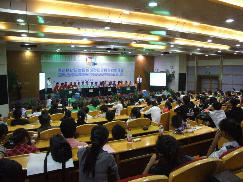 我校副校长王利琳教授、浙江省化学学会理事长郑小明教授、浙江省化学化工制药类教学指导委员会主任委员李伯耿教授、浙江省化学学会副理事长王彦广教授、浙江省化学化工制药类教学指导委员会副主任委员章鹏飞教授、我校教务处副处长凌明路出席了开幕式并发表重要讲话。浙江省各高校化学化工类学院(系)负责人、指导教师、领队教师和参赛队员参加了开幕式,我校材料与化学化工学院执行院长邱化玉教授致欢迎词。