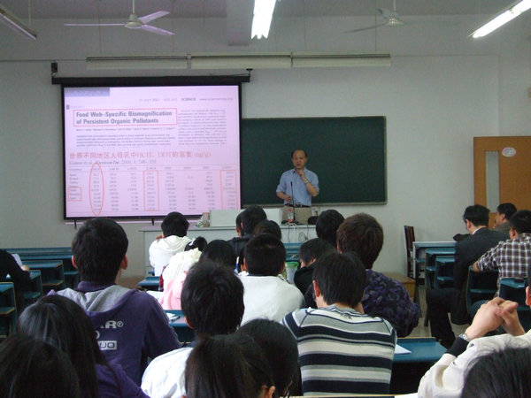 刘教授指出,环境科学领域所需要的是复合型综合性人才,熟悉化学以及工程专业的人才可以更加胜任环境科学的研究,希望同学们能够打下扎实的化学专业基础。刘维屏教授幽默风趣的报告,带领大家走进了一个奇妙的手性分子世界,受到了师生们的欢迎。(周静丹文/张赢图)