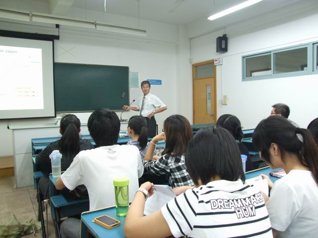 本科生课上,中山和郎教授主讲了“高分子材料的构造与物性”。从近几十年日本塑料生产量的曲线对比切入,说明高分子材料在当代生产生活中日趋重要、普遍化的应用。他着重从高分子材料结构与性能的关系、结晶度与分子取向的重要性两方面内容对高分子材料进行了详细介绍;并深入阐述聚合物处理方法、应用、分子量对塑料的结构性能的影响以及取向性和物理性能的关系。缓缓讲述的口吻向在座学生描绘出高分子材料的广阔发展图景。课后,中山和郎教授与在座学生进行了学术交流,其深厚的学术造诣和丰富的实践经验令学生受益匪浅。