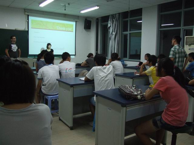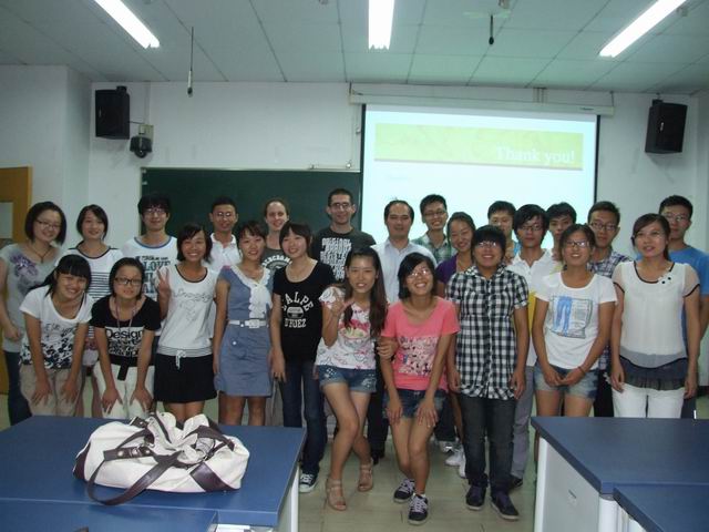 在本次报告会上,Hans为同学们介绍了欧洲化学现状,比利时的地理位置、风土人情以及欧洲排名第六位的鲁汶大学,大大地开阔了同学们的眼界。同时他也和我们分享了在中国3个月里的感受,对中国自然环境和人文气息表示了极大的赞扬和喜爱。随后,在场同学纷纷就比利时鲁汶大学现状、有机化学学习方法以及科研发展方向等问题向Kelgtermans Hans博士进行提问,Hans一一做了详细解答。幽默而睿智的言谈、耐心而沉稳的应答充分向我们展现了一名高研究领域学者的人格魅力与学术风度。
