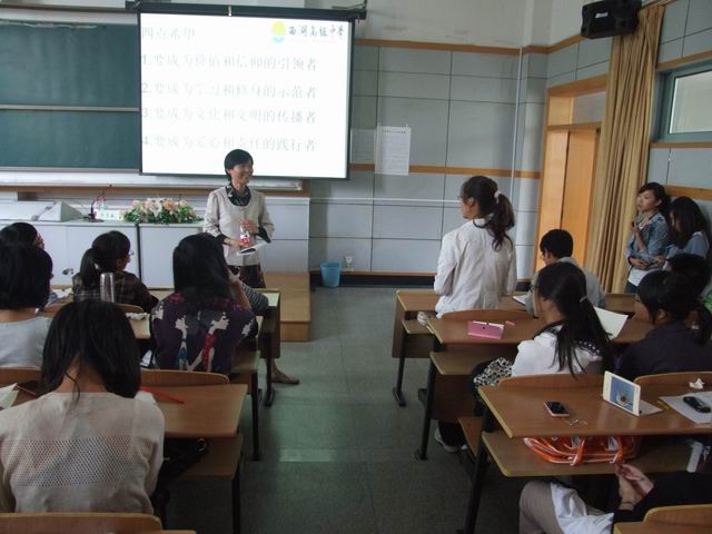 何玉春老师将她24年的教学生涯的总结为五个心,即:责任心、爱心、用心、细心、耐心。奉献是作为一个老师最基本的要求,而何老师的“将心比心”获得了尊重。作为一个人民教师,如何立足于三尺讲台,是每位老师值得思考的一个问题。讲座上,何老师将她的经验倾囊而授:“先是制定一个规划,对自己的发展有一个确实的目标,并且用充实的专业知识提高教学能力,虚心拜师,吸取前辈的经验,注重细节上的问题。”同时,何老师认为工作中最重要的是处理好师生的关系,与同事相处融洽,认真接受完成领导给予的任务。平时生活中,何老师喜欢挑战自我。“写论文,开公开课,每一次都是一个机会,一个挑战自我,不断超越的机会。我很享受这个过程,也从中受益匪浅。”
