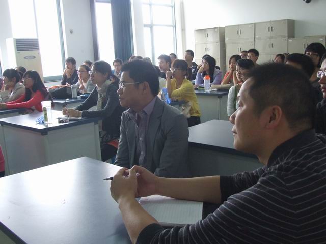 报告在老师们、同学们的掌声之中拉开帷幕。曹君博士从自己的研究方向入手,深入浅出的讲解了天然药物定性鉴别研究,比如丹参药材的显微鉴别、枳壳薄层鉴别;阐述了质控的主要方法,其中包括中药多组分定性定量分析结合技术、多组分的高灵敏分析、胶束液相色谱、微乳色谱等。报告还涉及了许多研究热点,如基于碳纳米管得中药多组分分析新技术以及离子液体和表面活性剂的灵活应用。