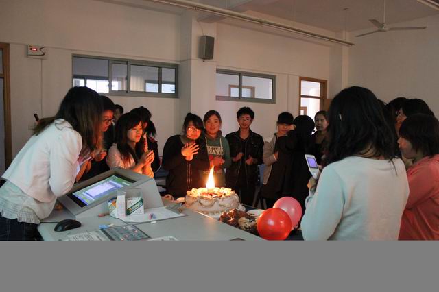 在主持人热情洋溢的开场白之后,同学们很快被生日温情的气氛所包围。为了让同学们有更好的交流,在相互介绍之后,主持人组织了名为“击鼓传花”的小游戏。主持人喊开始,气球开始在同学们手中传递,随即喊停,停的时候气球在谁手里谁就表演节目。“中奖”的同学有的唱歌,有的讲故事,有的讲笑话……每个人脸上都露出灿烂的笑容。接下来,在“我爱记歌词”游戏中,同学们被分为两组,并分别编号,能接上歌词的继续唱,接不上的就换下个编号的同学唱,最后哪个组没有唱的人数多哪个组胜出,并会得到水果作为奖励。游戏中每个人都很投入很紧张。突然,灯光熄灭,一个大大的蛋糕燃烧着盈盈的烛光出现在了大家眼前,生日歌好似等待已久,看到了信号,也忙飘扬而出。在这么一个特殊的日子里,溢满大家心间的,更多的是感动。