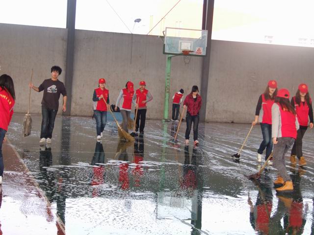 为树立新时代大学生的良好风貌,提高学生的综合素质,促进和谐校园建设,11月20日下午,我院青年志愿者协会与法学院、护理学院、国际服务与工程学院、体育与健康学院青年志愿者协会一同,在风雨球场开展了“我给球场洗把脸”活动。