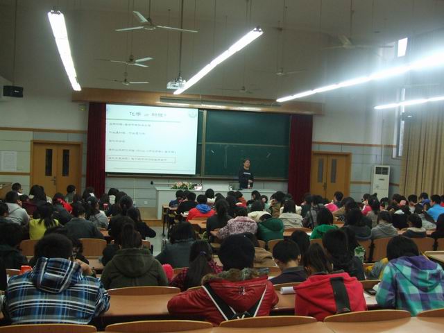 讲座上,从“调剂出来的化学路”、“学习or社团”、“考研or工作”到科研中的瓶颈、教学工作难题,由吉春逐一耐心与大家分享了自己的心路历程和宝贵的人生箴言。“加强理论基础,永远都很重要。”他希冀在座学子能多多聆听各位学者的讲座报告,加强自己的理论基础。此外,他鼓励学生们能摆正自己的心态,学会变换角度看待问题,在不断尝试中明确自己的方向。“再坚持一下,或许就是胜利”。在把握方向的同时,由吉春巧用数学积分算式形象地向学生说明沉淀理想的重要性,“你对待每一天、每一件事的态度的沉淀,就是你对待自己一生的态度”,学会珍惜时间,合理利用时间。由吉春用自身体验和经历娓娓道来,到场同学都仔细聆听。