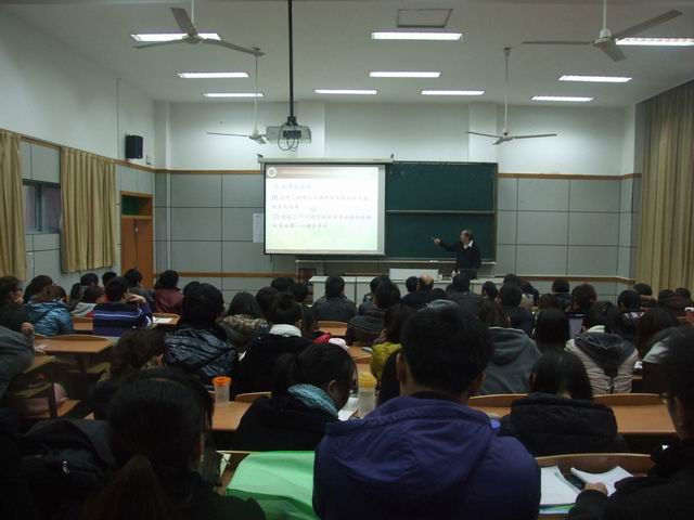 随后,范康年教授就“传递过程和非平衡态热力学”这一内容为在座师生进行了知识讲解。从传递过程的基本规律、非平衡态的条件、熵产生原理、基本概念与昂萨格倒易关系等多方面,深入浅出、详略得当的课堂讲解让在座学生充分感受到其独特的教学魅力,获益匪浅。