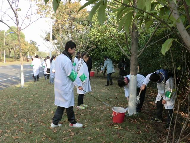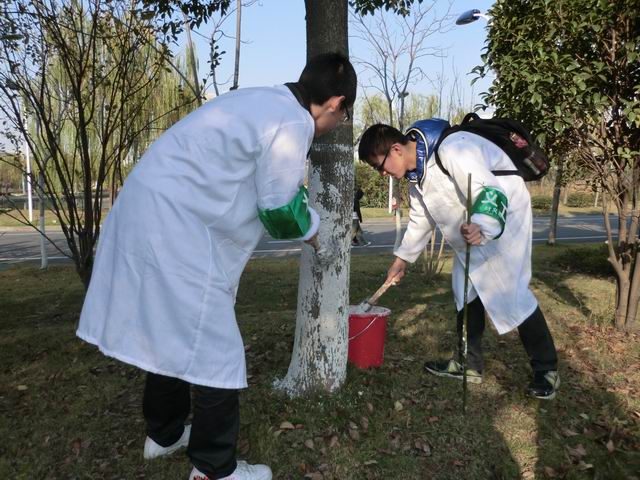 冬日校园绿化,我们在行动——材化学院义工联盟刷漆护林木活动正在进行中