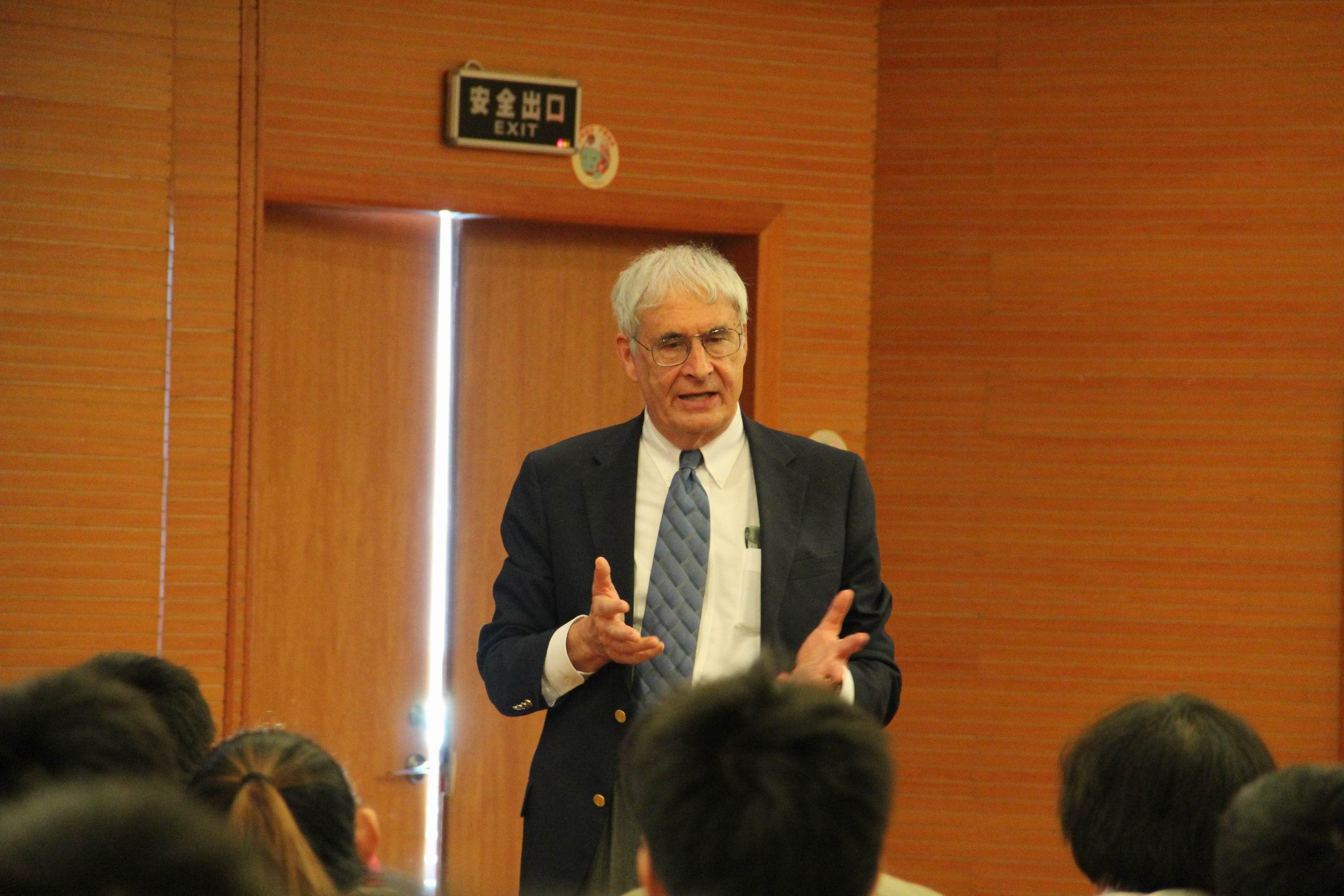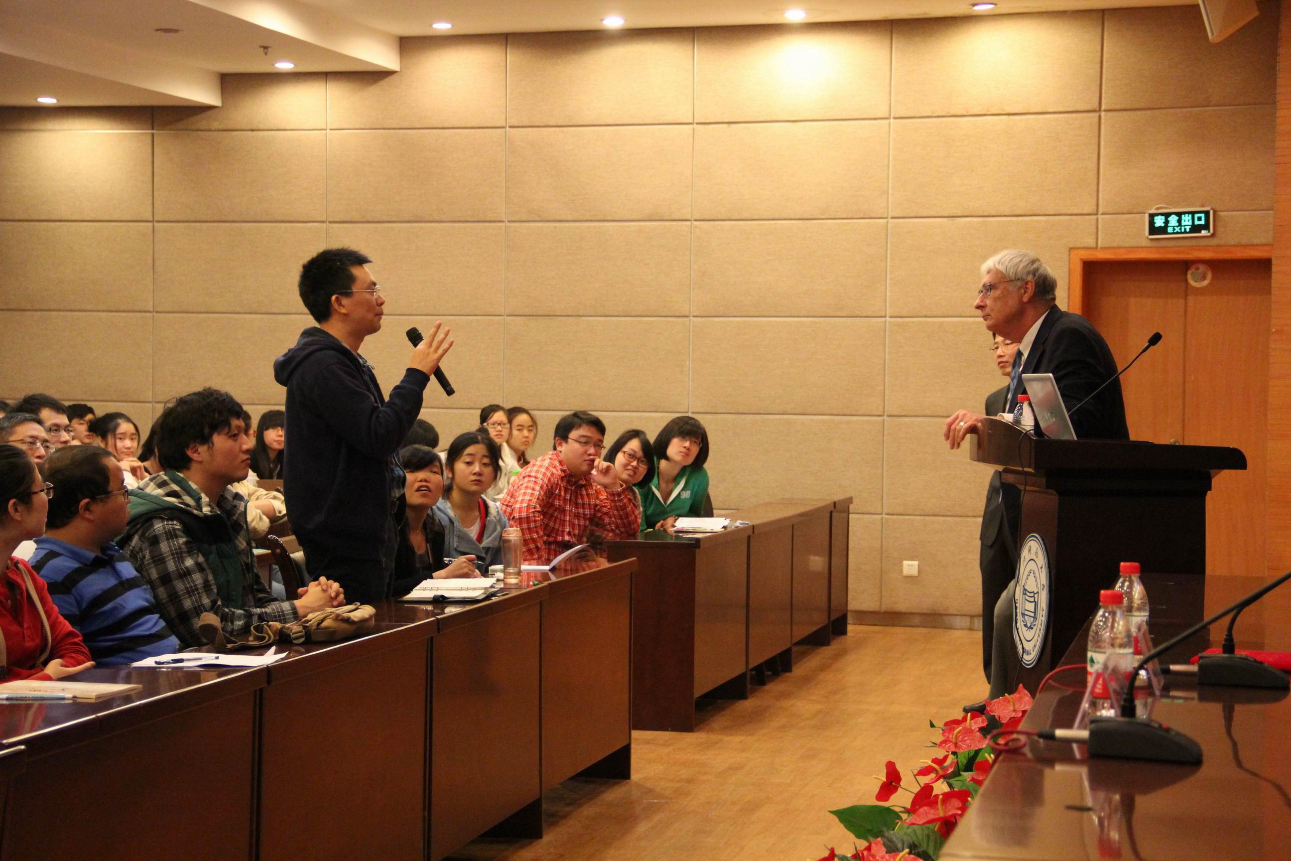 10月29日上午,在简单而隆重的荣誉教授受聘仪式结束后,Stang教授为我校师生带来了一场题为“Abiological Self-Assembly: Predesigned Metallacycles and Metallacages via Coordination”的精彩报告,与大家分享了20多年来在金属配位自主装领域的成果和进展,深入浅出地阐述了如何利用刚性的、具有多种角度的不同构筑单元,通过动态、可逆、高效的配位驱动自组装形成二维或三维的自组装体。报告过程中师生们对Stang教授幽默风趣又不乏严谨的讲述不时地报以热烈的掌声,互动环节中双方就相关的学术问题进行了讨论与交流。下午,Stang教授还和我校部分青年教师与研究生就学术研究、课题选择与创新、学习与人生等方面进行了广泛交流。一日的行程紧凑且丰富,师生们表示与这样一位世界一流学术大师的近距离接触和熏陶,对他们的人生、科研都有着积极的影响,为以后的发展和学习提供了许多有益的指导。