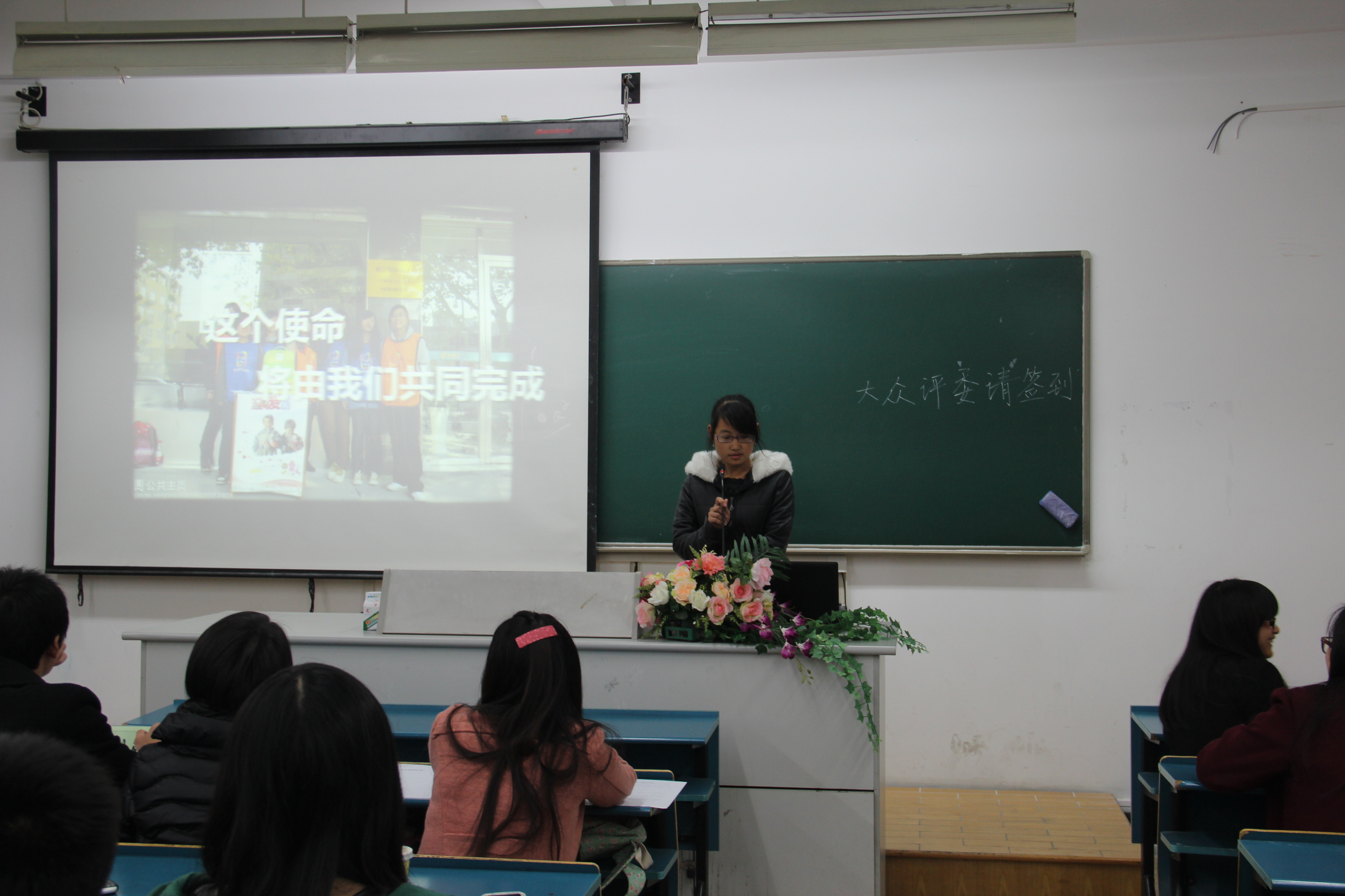 12月1日下午,材料与化学化工学院第四届“材化七星”评选活动在B-216教室正式开始,体育与健康管理学院学生会主席顾烈阳、我院学生会主席顾峥烨和秘书长寿杨玲担任此次评选活动的嘉宾,我院10级到13级每班5名大众评委参加了此次活动。