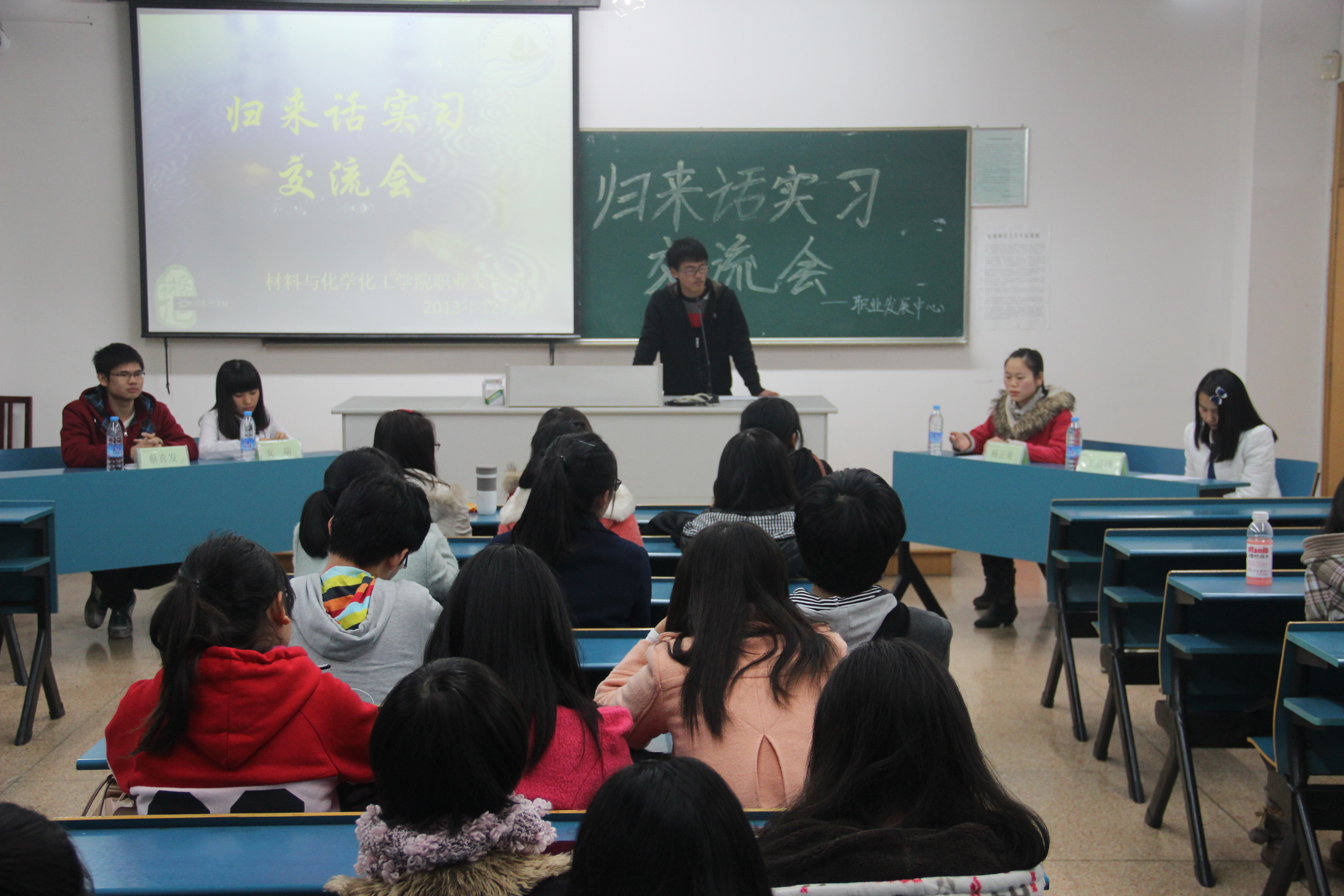12月8日晚, 材料与化学化工学院职业发展中心在A楼212教室举行了归来话实习交流会。我院大四的各个班同学以及部分大一、大二、大三的学生们参加了此次活动。