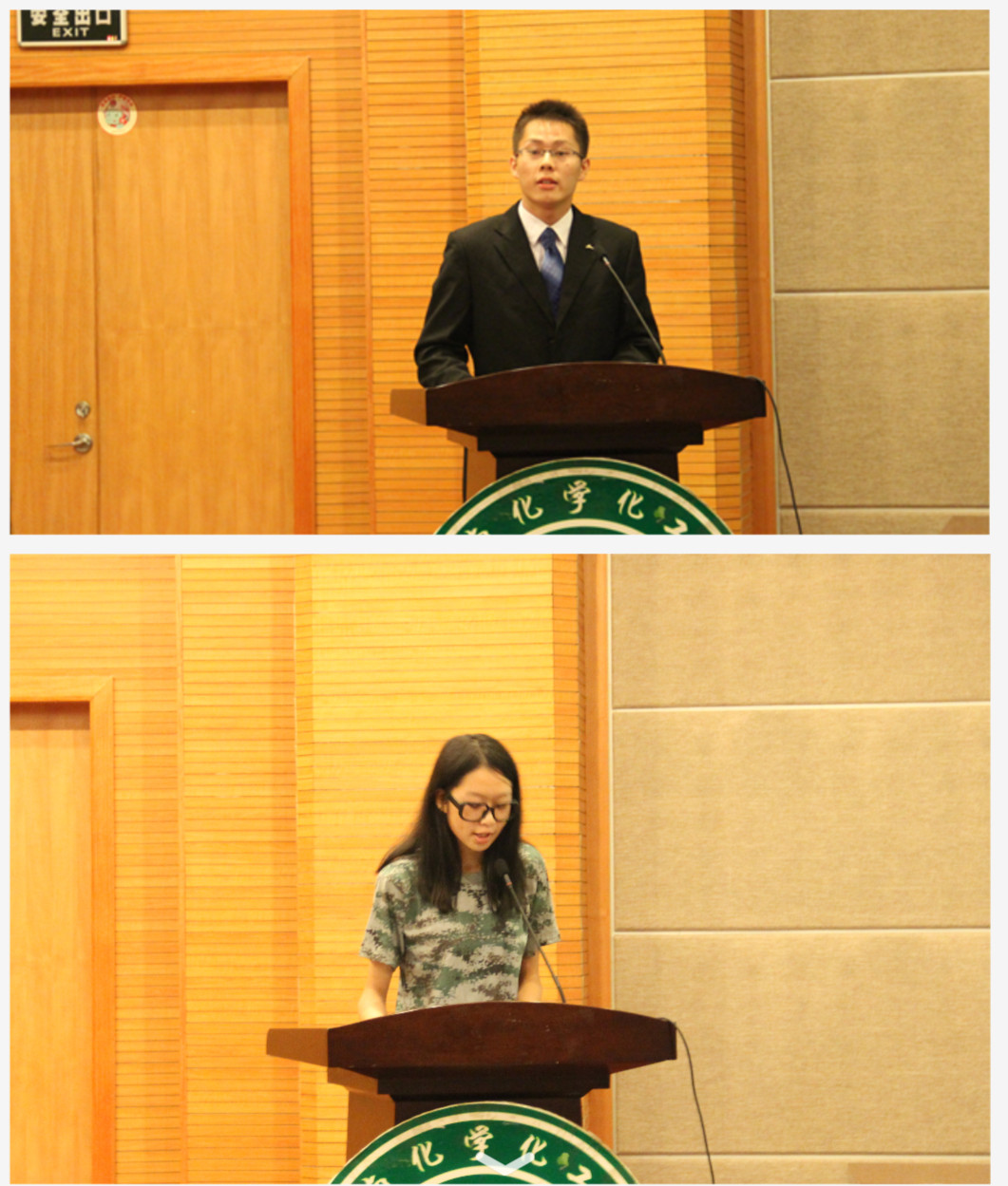 班主任代表化学141班班主任徐存进老师在会上发言,他提出了自己对2014级新生的殷切希望:能够尽快适应新环境、学会自主学习,并且一定要明确奋斗目标。