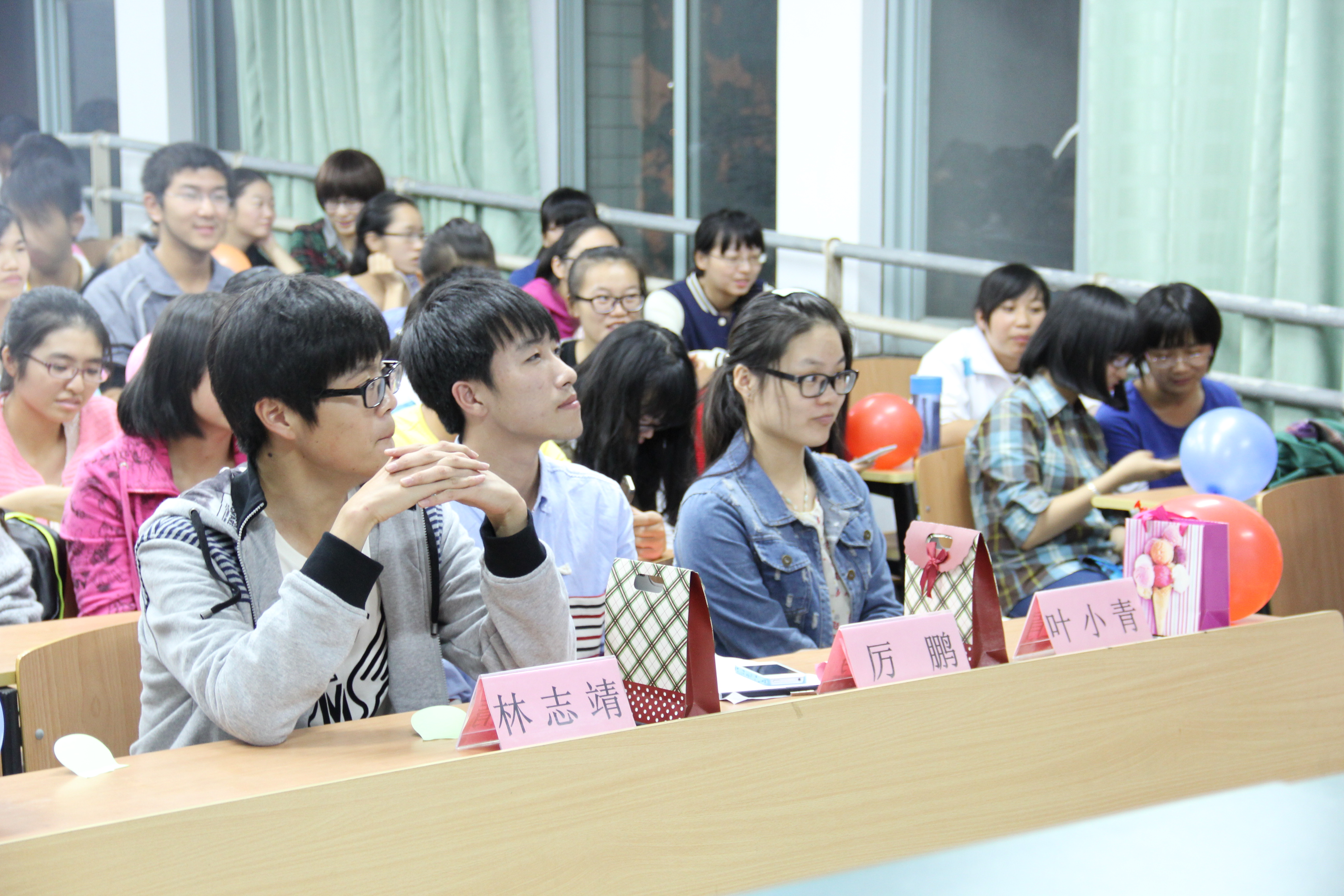 在主持人冯林彬的精彩开场白后,通过一段有关青协活动的VCR,会员们初步了解了两院青协的成立目标和基本活动的开展性质。视屏中,一张张照片记录了两院青协的关爱历程,同时也坚定了在场志愿者们想要志愿服务的心。随后,在会员代表沈露露的带领下,全体人员起立,进行志愿者宣誓。激昂的宣言,更是荡漾在两院青协会员的心中。接下来的一系列游戏和有奖竞答活动把活动气氛推向了高潮。