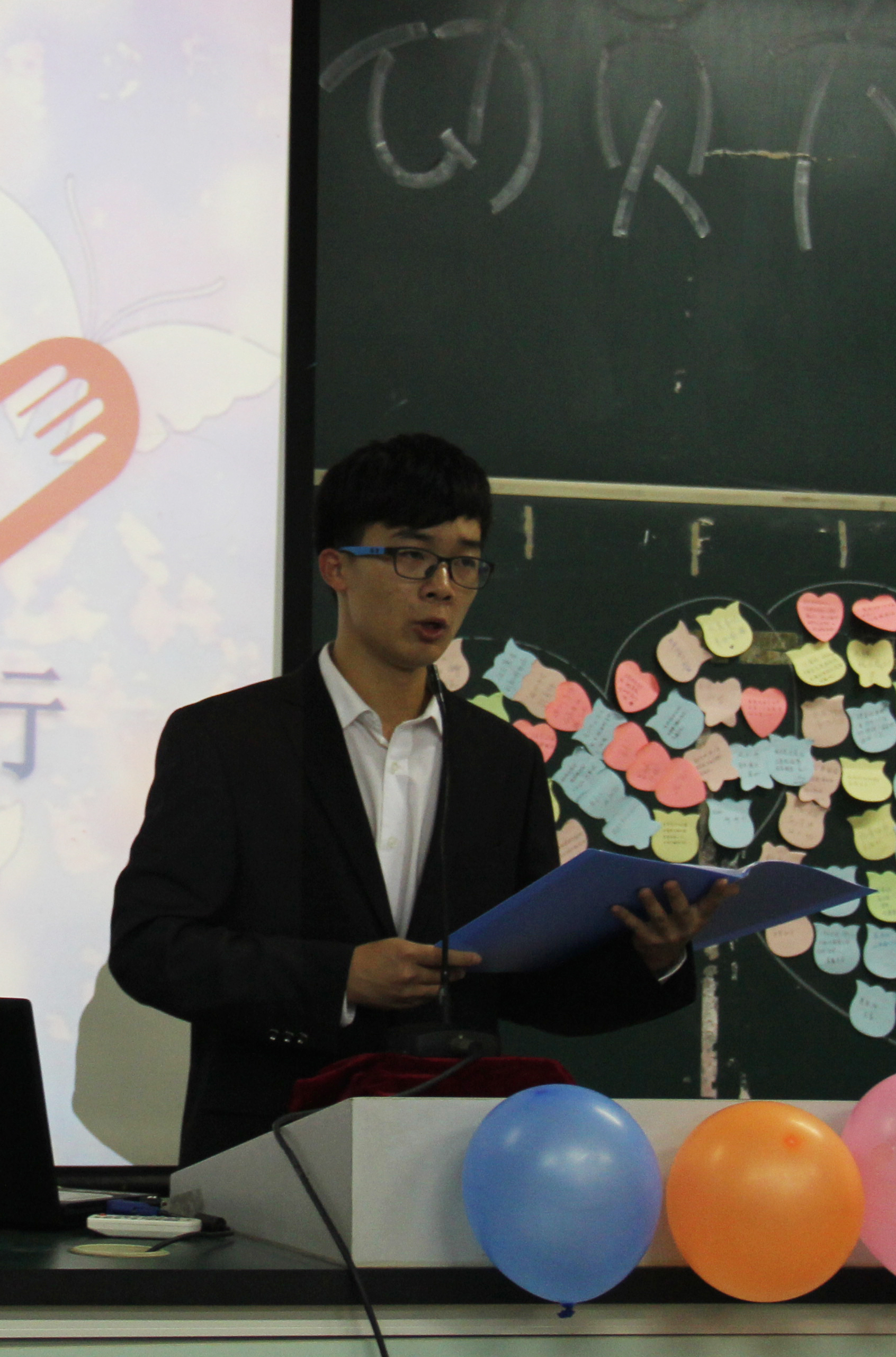 校青年志愿者协会副主席厉鹏也分享了一些他自己做志愿者的感受和心得,这让会员们对未来的志愿活动充满了期待。大会最后,在主持人的引导中,会员们写下了对两院青协的祝愿,并且贴成了两颗大大的爱心。在这样温馨的氛围下,本次动员大会正式落下帷幕。