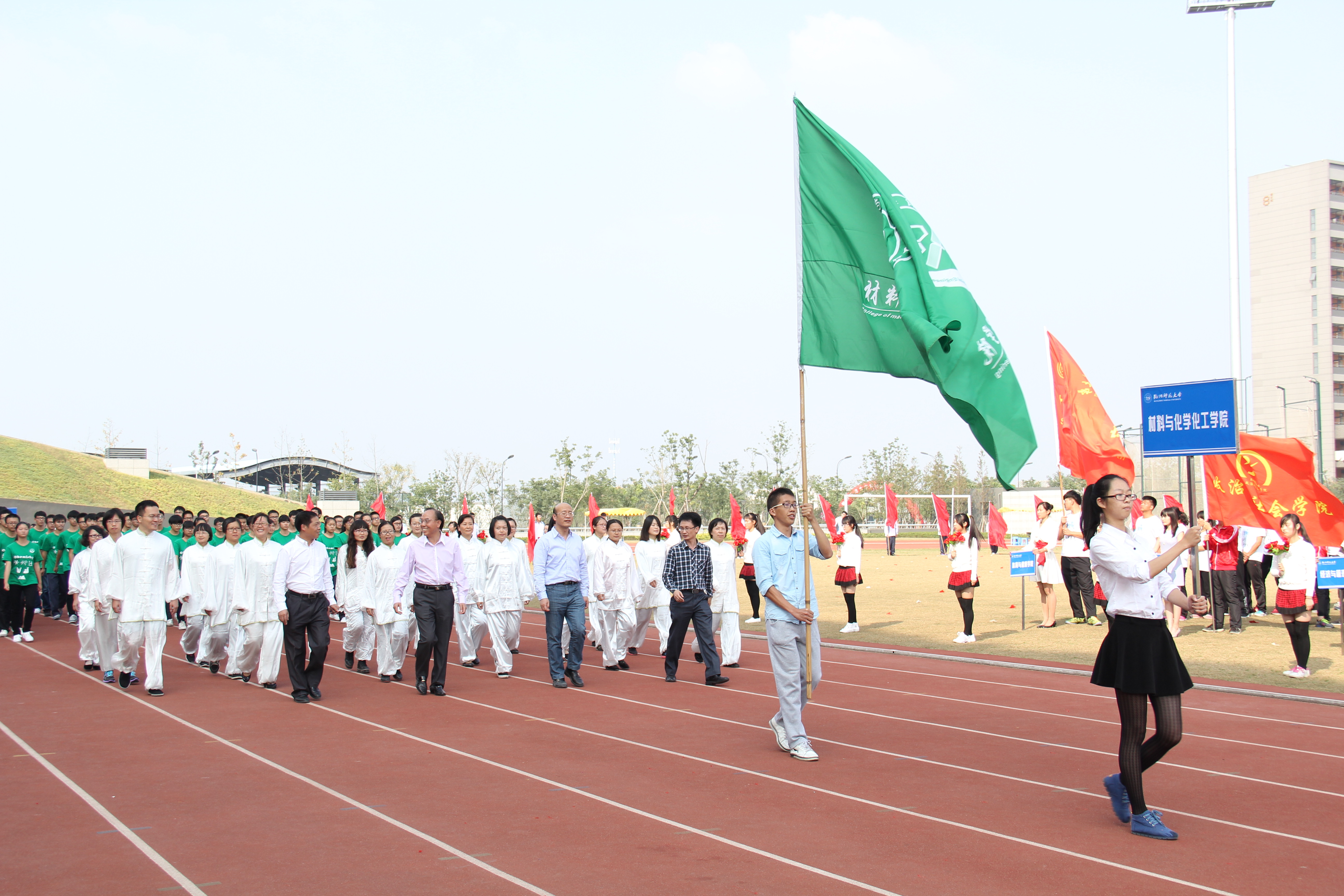 开幕式上,我院师生方阵精彩亮相。他们各个朝气蓬勃,精神抖擞,凭借具有学院特色的苯环队形打出精彩绝伦的一套特色拳。“材化学子,争创一流,团结奋进,共创辉煌”,声声遒劲有力的口号,激荡在会场上空,展现着我院快乐运动、团结合作、拼搏向上的进取精神。