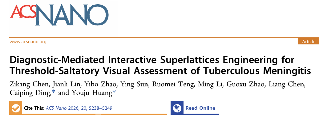 近日,我院黄又举教授团队在用于结核性脑膜炎准确评估的比色可视化生物传感器方面取得新进展。相关研究结果以“Diagnostic-Mediated Interactive Superlattices Engineering for Threshold-Saltatory Visual Assessment of Tuberculous Meningitis”为题发表在ACS Nano (Q1, IF=15.8)。DOI: 10.1021/acsnano.5c21167。