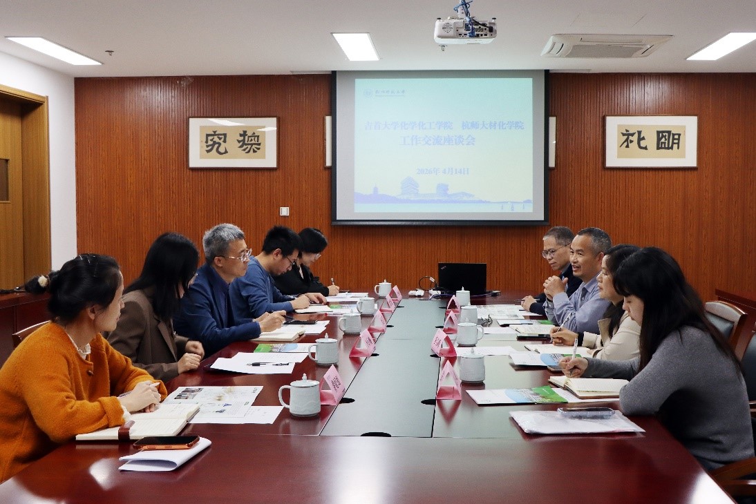2026年4月14日上午,吉首大学化学化工学院肖竹平副院长一行人来我院座谈交流,学院副院长李志芳,化学系主任邵欣欣,化学系副主任李万梅、王秀丽及相关人员参与交流。